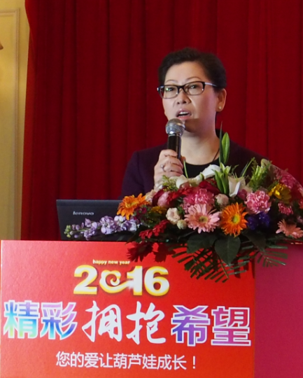 最后,葫芦娃药业集团董事长刘景萍博士做了重要讲话。刘董首先肯定了葫芦娃药业在2015年各项工作中取得的工作佳绩,并对41位优秀员工和优秀管理者表示祝贺;同时进一步明确企业的发展战略和品牌战略,为2016年工作指明方向;也要求全体葫芦娃人恪尽职守,勇于奉献,一起为葫芦娃事业努力奋斗!最后祝全体葫芦娃人新春快乐、身体健康、猴年大吉!