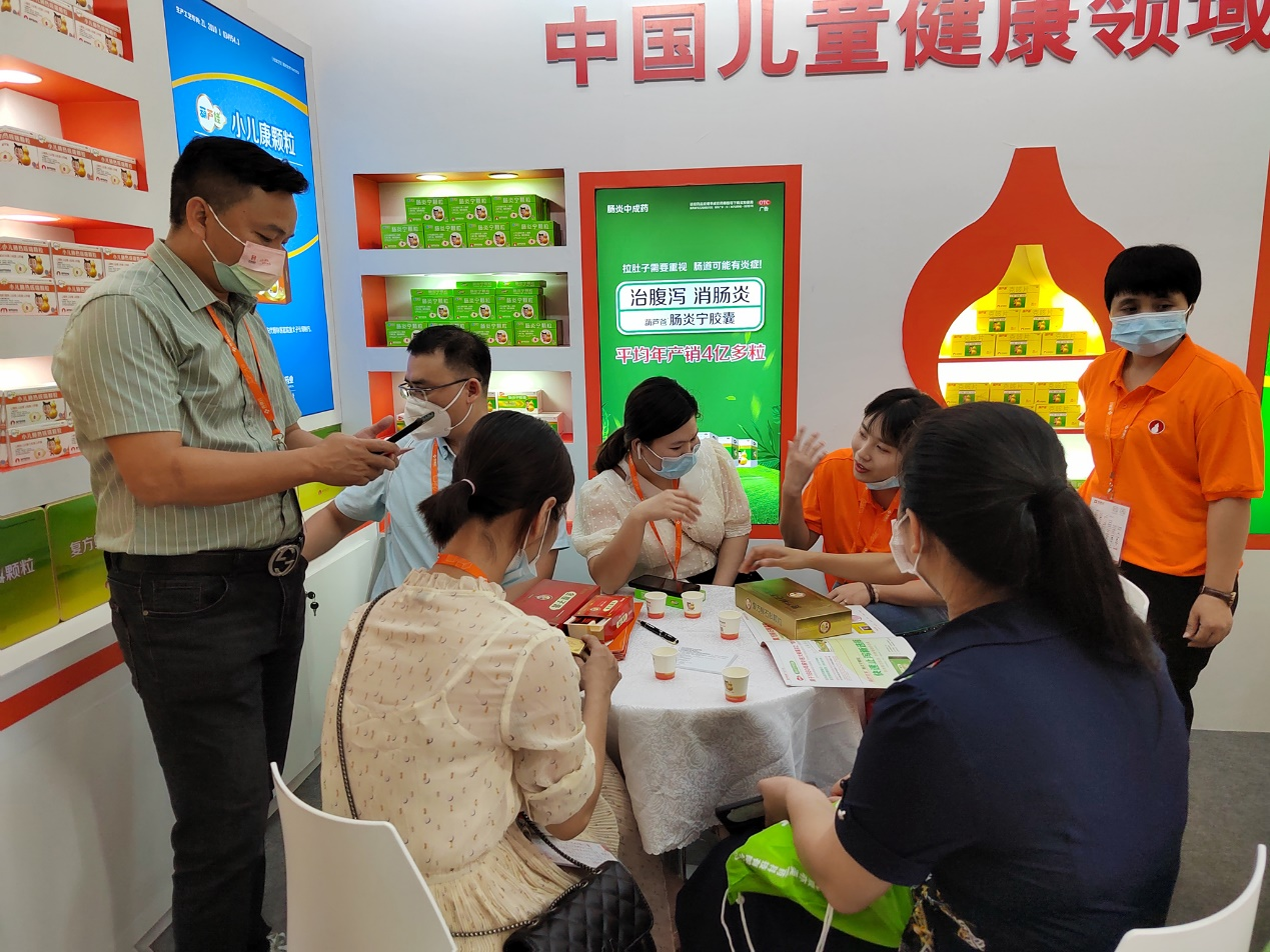 本次会议期间,葫芦娃药业集团主要推出儿科呼吸系统治疗领域的主打产品独家4克装小儿肺热咳喘颗粒、独家单剂量软袋装小儿止咳糖浆、儿童防感香囊和儿科消化系统治疗领域的独家浓缩型、无蔗糖型肠炎宁颗粒2克装、独家每袋5克规格的小儿康颗粒、婴儿健脾散等系列产品,前来接洽业务的连锁客户络绎不绝。